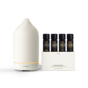 Elevate your home with our Diffuser Starter Bundle, perfect for those new to diffusing or looking to try something new. Featuring the iconic Stone Diffuser and Signature Kit, this bundle naturally scents your space with 100% pure essential oils. The Stone Diffuser doubles as elegant decor and offers an 8-hour run time. The Signature Kit includes four legendary blends: floral, citrus, herbal, and woodsy, ideal for creating a harmonious and balanced atmosphere.